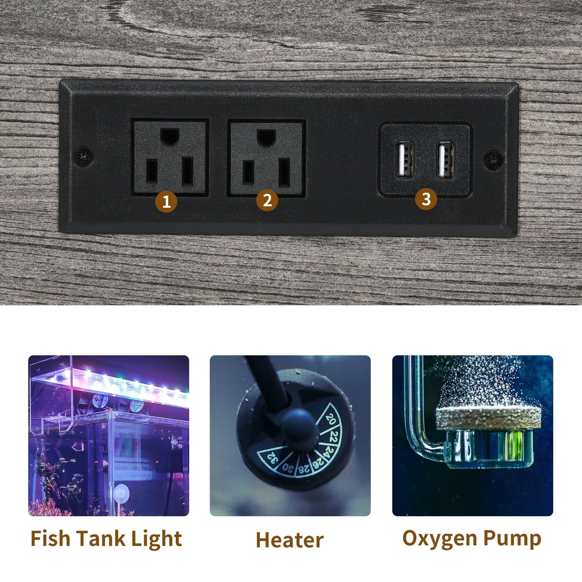 - Practical and User-friendly: Streamline your aquarium management with our stand designed to simplify your life. The integrated power outlets require no extra tools to set up and let you quickly connect electronic devices, like heaters, lights, and oxygen pumps.