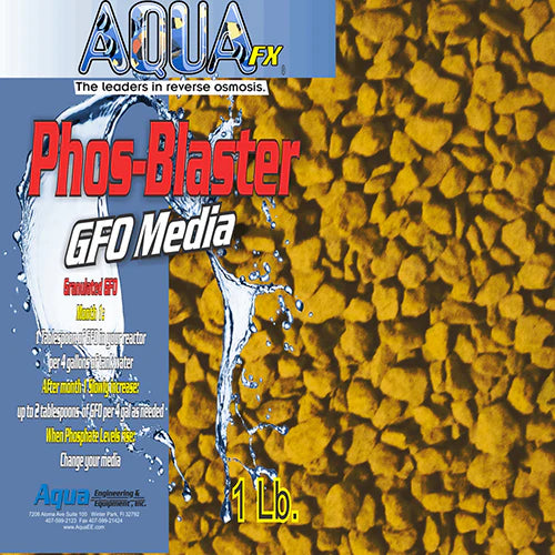 AquaFX Phos-Blaster GFO is ideal for promoting coral growth (SPS and LPS alike) in your reef or salt water tank. Not only can you prevent algae outbreaks, but you can help to stop current out breaks which may be running rampant due to high phosphate levels.
