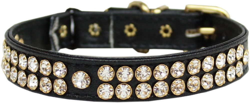 This jeweled cat collar helps keep your pet safe and at the same time makes a stylish statement! This ½" wide cat collar is adorned with two rows of hand set clear crystals. It includes an elastic band for your cat's safety. A quality made design and classic collar!