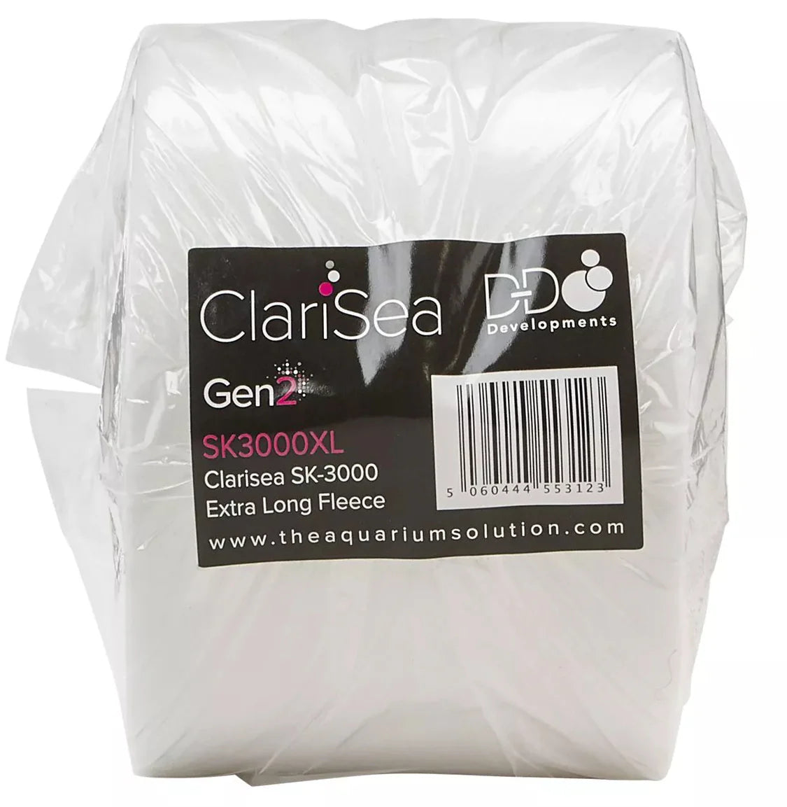 The ClariSea works in exactly the same way except that instead of overflowing and having to change or clean the bag, it automatically rolls on to expose a fresh piece of material. The fresh fleece will allow larger particles to pass through and the dirtier material will stop smaller particles.