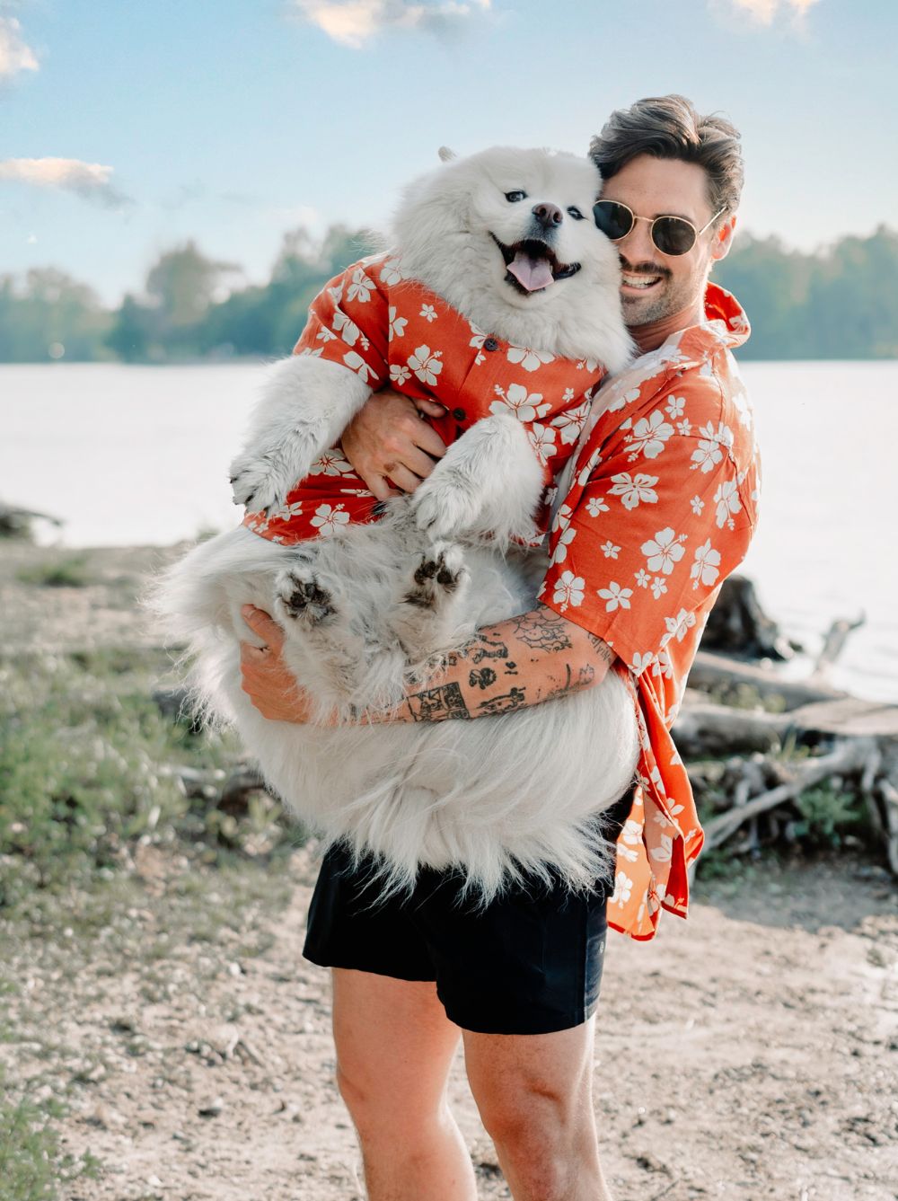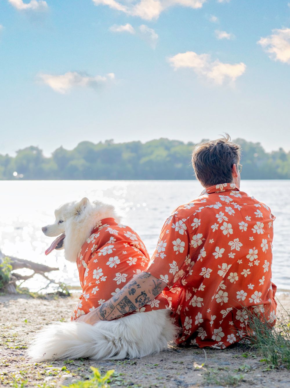 Our terracotta-take on a classic hibiscus floral print. Create memorable moments with your fur fam in matching BBQ Shirts by Dog Threads.