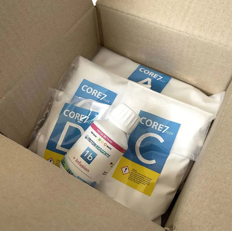 Complete solutions designed to maintain near NSW parameters for reef aquaria as part of the Triton Method of reef keeping.