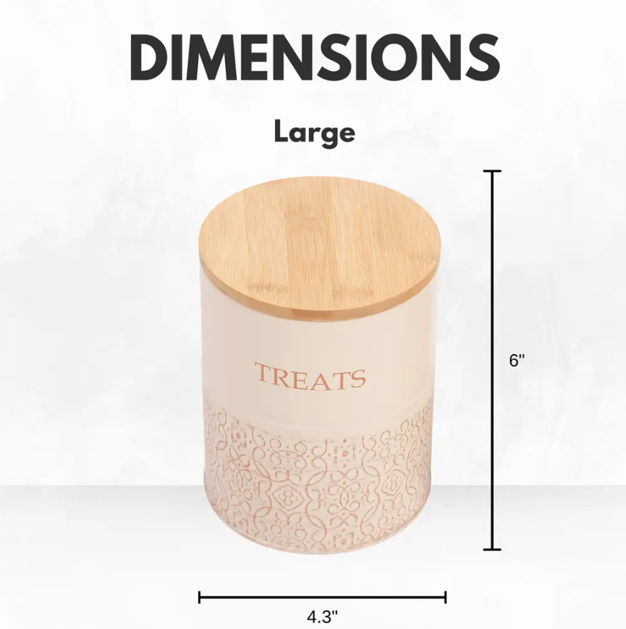 - Locks in Freshness – Each canister comes with a natural bamboo lid that seals out moisture and pests, preserving the quality and flavor of your pet’s treats for longer.