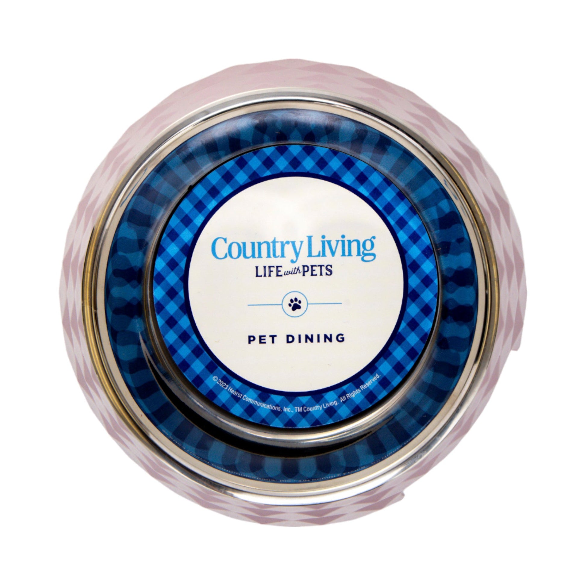 Country Living Set of 2 Diamond Twill Melamine Dog Bowls with Removable Stainless Steel Inserts – Wood Rose