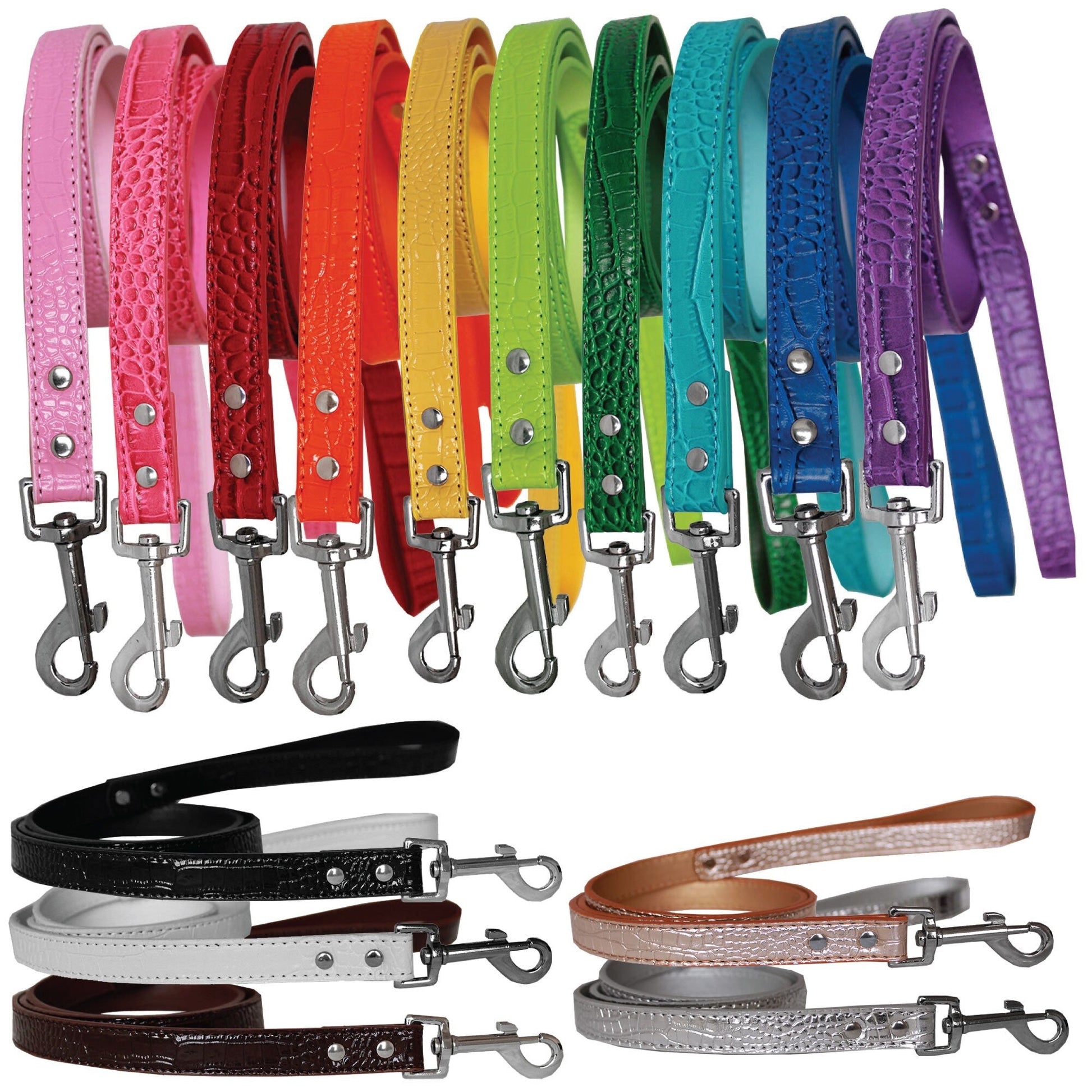 Glamorous plain faux croc leashes to match our Croc collars! Leashes are available in ½" wide, by either 4 ft. or 6 ft. long.