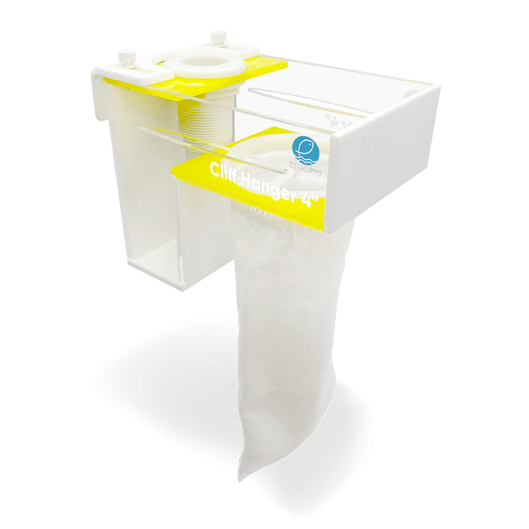 The ESHOPPS Cliff Hanger 4” and R Filter Sock holder is the most innovative way to add mechanical filtration to any sump. Cliff Hanger incorporates a 1” (single for 4” & dual for R) bulkhead inlet, and up to 1.25” wide adjustable sliding clamp mount with easy access top mounted thumb screws. Featuring a quiet spill over method filter sock cradle with safety overflow slots with clear side viewing panels. Cliff Hanger 4” includes (1) 4”x 200 and R includes 4”x 7 micron filter sock.