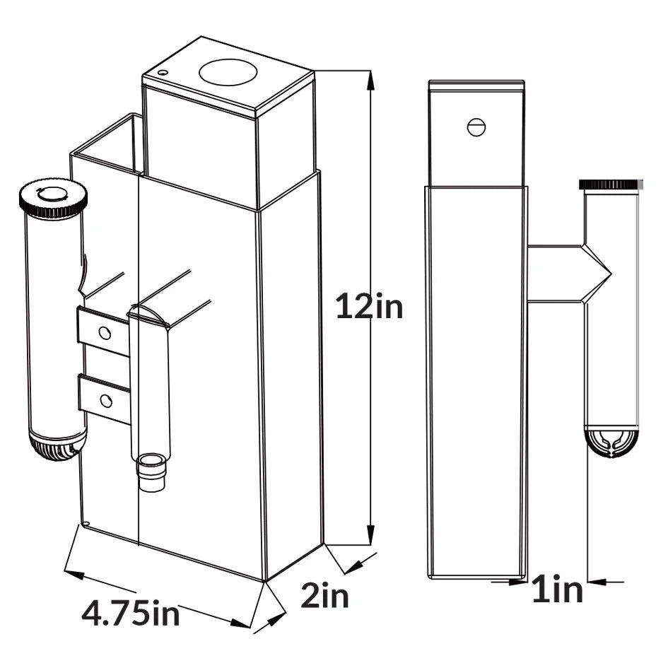 Footprint: 4.75" x 3.5" | Reaction Chamber: 3" | Height: 19"