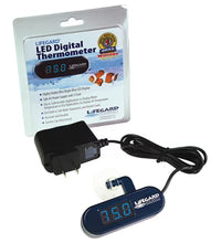 LIFEGARD® AQUATICS continues to innovate on their breakthrough technology with the development of the industry’s first submersible LED Digital Thermometer. This highly visible, ultra-bright blue LED display can be seen from across any room. When used submerged it displays the water temperature in your tank or secure it outside to display the air temperature. Uses include fresh or saltwater applications and reptile tanks. Our sensor is accurate and dependable. The Lifegard LED Digital Thermometer features an adjustable suction cup attachment and includes a safe, 6V power supply with 5′ cord and a hang or stand clam shell display with complete instructions.