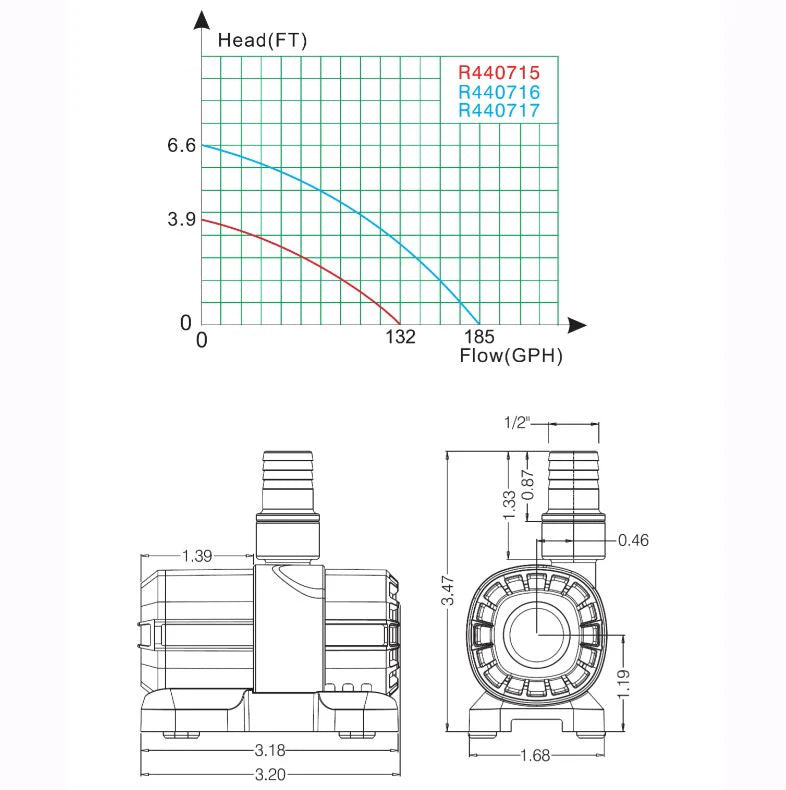 Pump Dimensions (LxWxH): 3.2" x 1.68" x 3.47"
