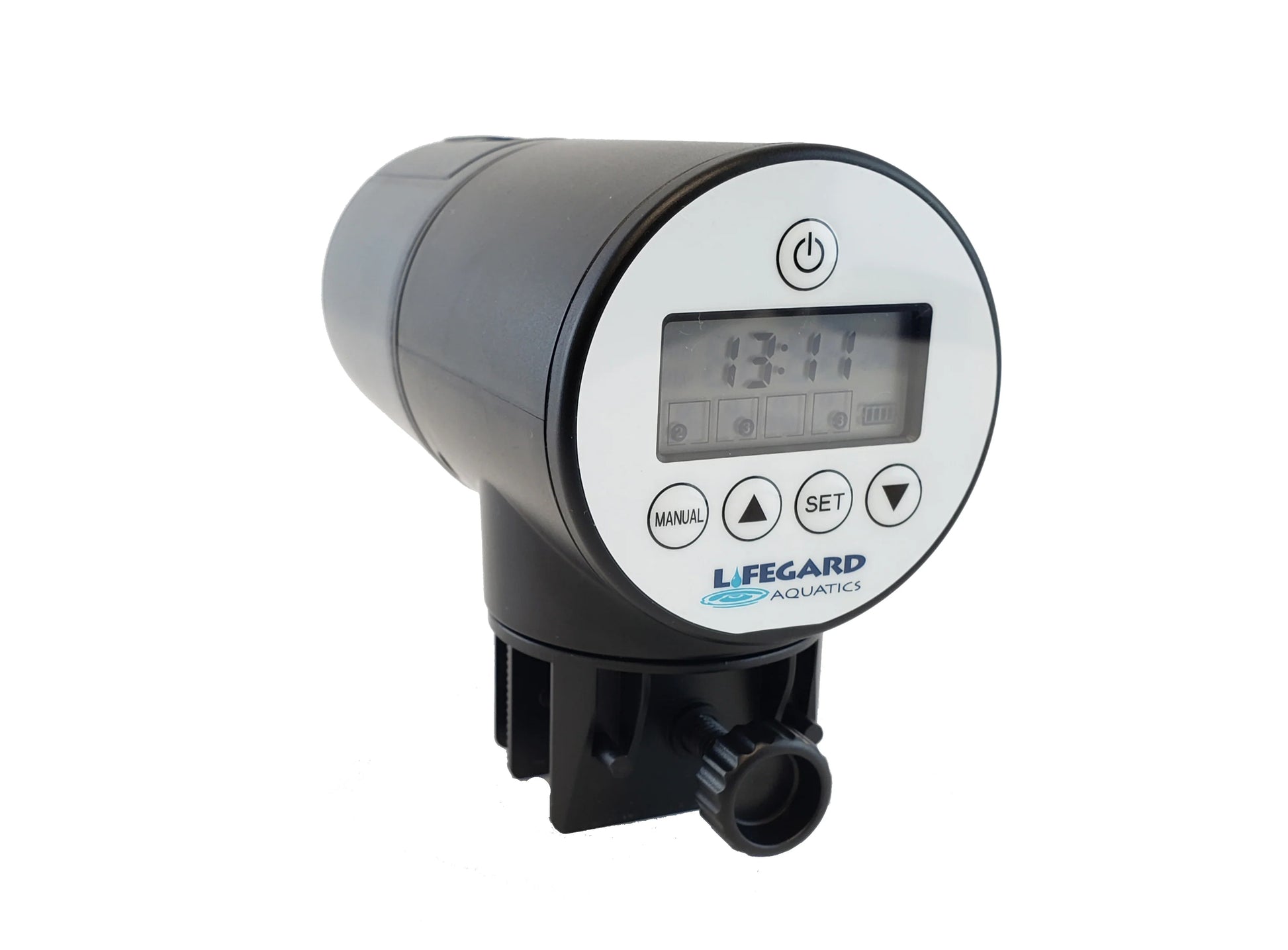 This Lifegard Aquatic's fish feeder attaches to your aquarium easily with a tank mount that swivels 360 degrees to make feeding a breeze. You don't have to worry about food floating into your filter before your fish can eat because you decide where to mount the device and the swivel lets you adjust the position to dispense food precisely where you'd like it to go, like far from your overflow and into a feeding ring, for example.