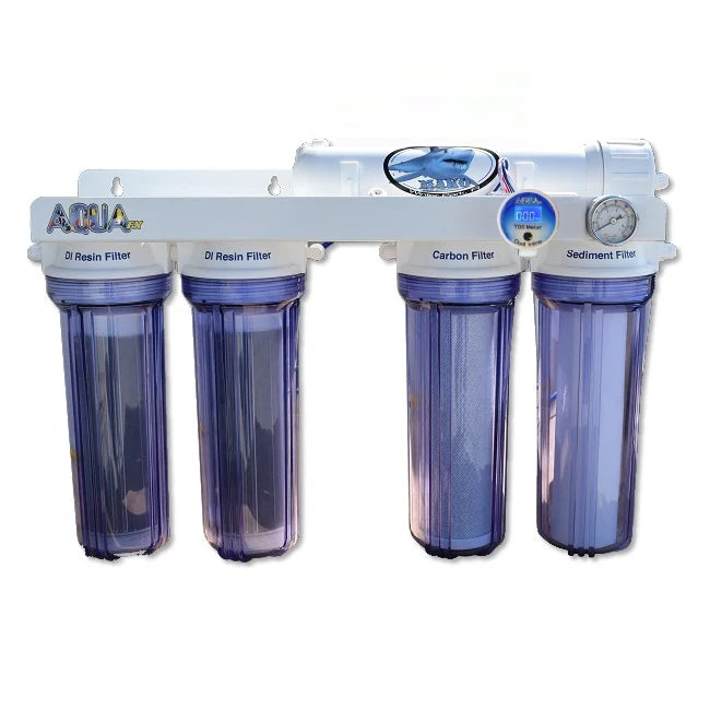 The AquaFX Barracuda is offered in several flow rates from 50 GPD to 200 GPD (Gallons per Day). AquaFX furthers this great unit by allowing you to select the carbon your system uses, giving you the ability to deal with disinfectants such as Chloramine or even traditional Chlorine. The Barracuda has great appeal for every reef keeper, from the weekend hobbyist to professional service companies. Truly making AquaFX 'The Leaders in Reverse Osmosis'