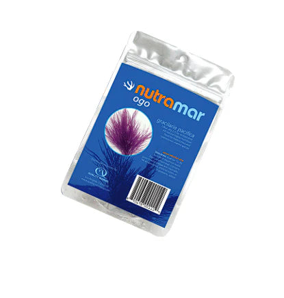 Nutramar Ogo is a freeze-dried Gracilaria algae, which when soaked in aquarium water rehydrates to approximately 10 times its dry weight. After full rehydration, Nutramar Ogo looks as it does in the wild and fish will accept it just as eagerly. Nutramar Ogo is a high quality solution for feeding marine herbivores and omnivores a natural diet filled with amino acids, vitamin C, zinc, unsaturated fatty acids, and a variety of other essential vitamins and minerals.