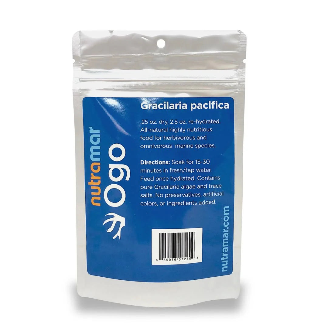 Nutramar Ogo comes in 1/4 oz. resealable packages, and rehydrates to 2 ½ oz of edible product after soaking in aquarium water.