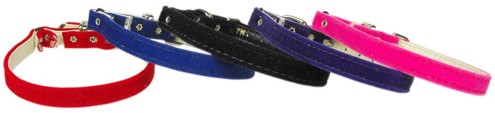 Keep your precious cat safe and stylish with our cat safety collars! This ⅜" wide plain cat collar is made from our wonderful velveteen material, and features an elastic safety band.