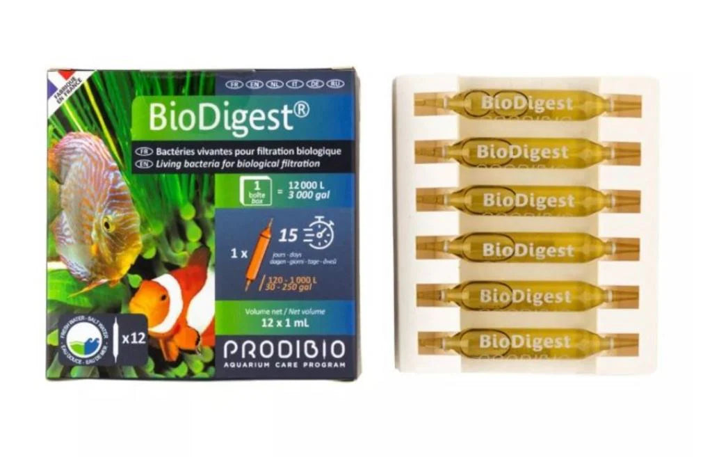 BioDigest is most commonly used when starting a new aquarium to kick-start the nitrogen cycle. It's composed of natural bacterial strains selected for their ability to contribute to the biological filtration of the aquarium. These nitrifying and denitrifying bacterial strains work by converting ammonia into nitrites, nitrites into nitrates, and nitrates into nitrogen. The result is safer and cleaner water for the tank inhabitants.