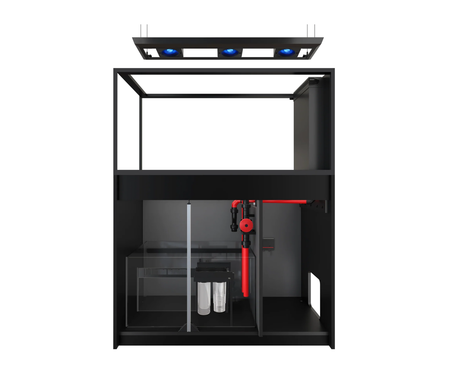 ReefMat-Ready Sump: The professional REEF-SPEC glass sump features a dedicated mechanical filtration compartment perfectly sized for plug-and-play installation of a Red Sea ReefMat automatic fleece roller filter (sold separately) or standard filter cups/media.
