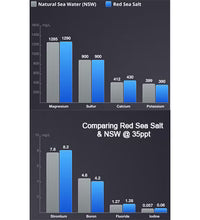 Red Sea Salt contains moderately elevated and balanced levels of the foundation elements (Calcium, Magnesium, Bicarbonates) necessary for sustainable coral growth.