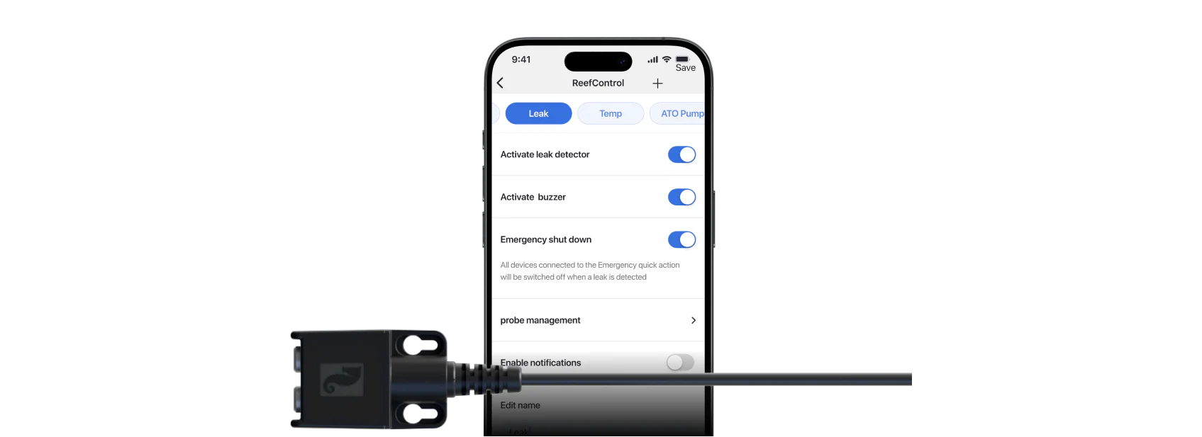 The ReefSense digital Leak Detector can be connected to the ReefControl Lite or Pro controllers and will reliably detect water spillage from RO to Seawater. Multiple detectors can be attached to the same controller for added peace of mind.