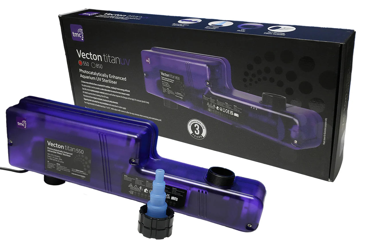 The Vecton Titan UV has been produced using specially selected photocatalytic material. The photocatalytic reaction provides a safer alternative to ozone for even cleaner water. Thanks to this Titan UV technology, the Vecton Titan UV is 1.3 times more effective than a standard UV steriliser, making it more energy efficient. The photocatalytic lining also protects and further improves the lifespan of the high UV resistant plastic body. As with the rest of the award winning Vecton UV range; the Vecton Titan UV is designed with opposing inlet and outlet and comes with four stage hosetails for flexible hose from ½” to 1¼” for easy installation and connection to the water supply. These are held in place with screw on collars for easy removal when servicing and maintaining unit. There is a UV shield to prevent direct viewing of the UV lamp and the body is manufactured using impact resistant, translucent polycarbonate. Also included is an elbow connection, instruction manual, and a 3-year guarantee.